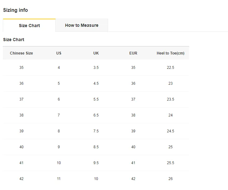 Sizing Chart Shop The Kei